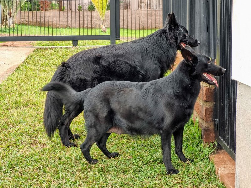 Trabalhamos com linhagens selecionadas de Pastores Alemães Pretos e Capa Preta.