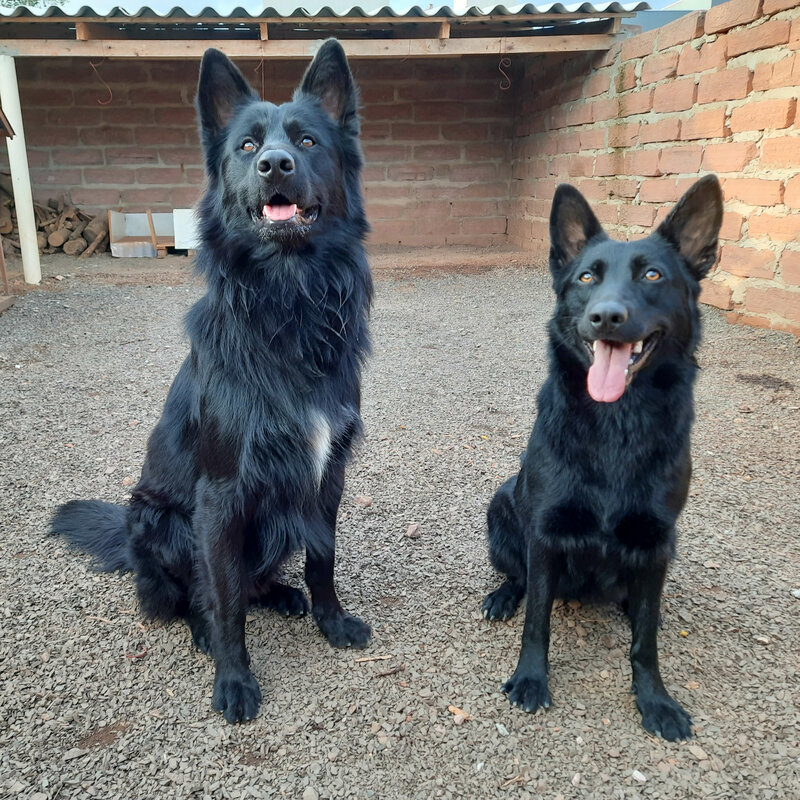 Trabalhamos com linhagens selecionadas de Pastores Alemães Pretos e Capa Preta.
